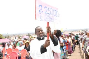 In a moment that drew applause and prayers from the assembly, Mr. Mubang stood before the faithful and made a public pledge: he personally committed 80 million FCFA to the construction of the hospital’s new facilities. Furthermore, speaking on behalf of the extended Mubang family—both at home in Cameroon and in the diaspora—he announced an additional 80 million FCFA contribution from the family collective. Together, these pledges totaled 160 million FCFA dedicated to the project.