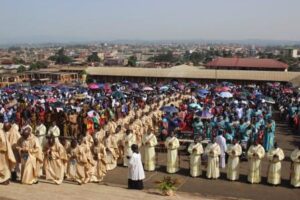 A spirit of celebration and deep gratitude filled the St. Joseph’s Centenary Piazza in Big Mankon on Wednesday, April 20, 2022, as His Grace Andrew Fuanya Nkea, Archbishop of Bamenda, conferred priestly ordination on 19 new priests in a solemn and uplifting Pontifical Holy Mass.
